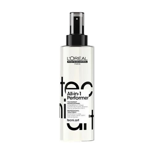 Profesionalus daugiafunkcis nenuplaunamas purškiklis L‘oreal Professionnel All-in-1 Performer – tai universali plaukų priežiūros ir formavimo priemonė, sukurta vienu žingsniu suteikti net 30 skirtingų naudų. Lengva formulė su 4 % priežiūros kompleksu sujungia kondicionavimo, apsaugos ir formavimo savybes, todėl plaukai tampa idealiai paruošti džiovinimui ir stilizavimui.