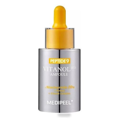 Medi-Peel Peptide 9 Vitanol Ampoule Pro – koncentruotas serumas su 20 % niacinamido ir patentuotu Vitanol Complex™, sukurtas pigmentinių dėmių, strazdanų ir netolygaus odos tono mažinimui. Serumas veikia giliau esančias dėmes ir suteikia ryškų skaistinantį poveikį. Dviguba vitaminų kapsuliavimo technologija padeda išlaikyti maksimalų veikliųjų medžiagų stabilumą ir efektyvumą.